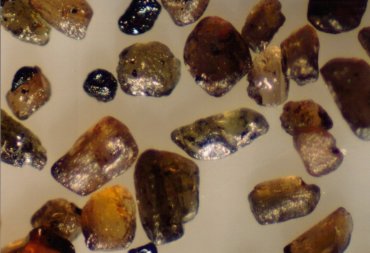 輝石を主体とする砂。バーム養浜の下の海岸だが、砂浜侵食が激しく、引き波で残された重砂の黒い海岸になっている。。