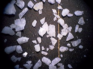 斜長石の破片。東京軽石層の斑晶から。透明だが劈開があり、 角張ったかたちの破片ができやすいことがわかる。
