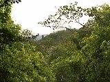 稜線から短くなった大煙突を望む。かつてはどーんと155mもの大煙突がそびえていたが、上2/3が倒壊し、現在はごくふつうの煙突になって余生を送っている。