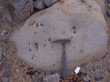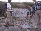 宮内さんが案内されたところの生痕化石。サンドパイプ。