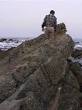 海岸から南方向。磯崎から南に白亜系の岩礁が続く。