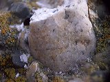 石英質砂岩のレキ。よく見ると砂の粒子がわかり、花崗岩ではない。