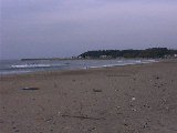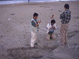 阿字ヶ浦の海水浴場。石英質の白い細かい砂。有孔虫の殻を渡辺さんの実体顕微鏡で見つけて、 みんなで砂を集める。