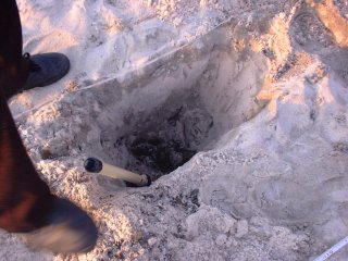 違う深さの砂が混じらないように、注意深く砂サンプルを袋に入れる。
