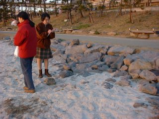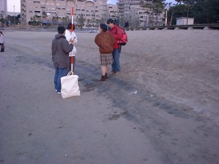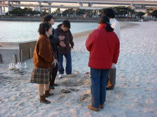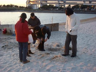 お台場の人口海岸の西側は、砂が運び去られて、浸食を受けている部分もある。