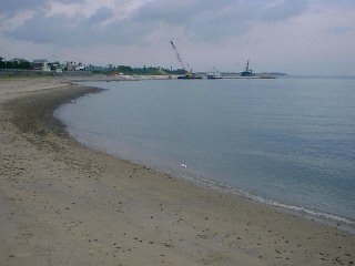武蔵港南。護岸が完成するとこうなる。岬と岬の間の浜は、