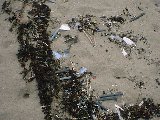 武蔵港北の砂浜にて。漂着物。コウイカの殻がある。