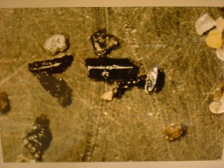 大分空港北側。砂浜の黒い部分(重鉱物砂)。角閃石や輝石が多い。