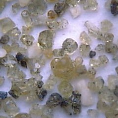 ほとんどが、かんらん石olivineの結晶からなる砂。 マグマ水蒸気爆発のサージ堆積物が海岸に海食崖として露出し、そこから削られた砂。かんらん石だけ濃集するのは、 引き波で密度選鉱(椀掛け)されて、密度の大きいものが岩棚にたまったから。