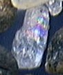 閃光を見せる斜長石。劈開(あるいは薄い双晶・離溶ラメラ)があるのでこのような現象が起きる。