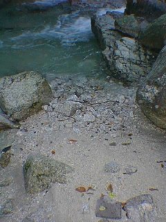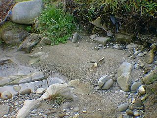 砂を顕微鏡で見ていると,ときおり石英球が見いだされますが,温泉の下流