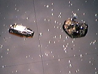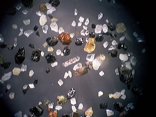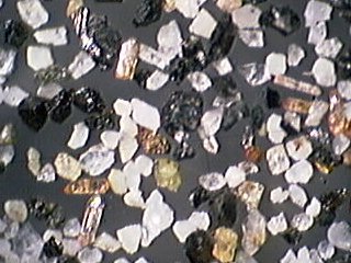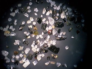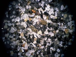 *びんた切れの水晶さんにお借りした、長野県高瀬川の放射性鉱物を含む重鉱物砂の顕微鏡写真です。