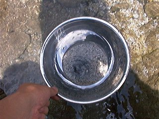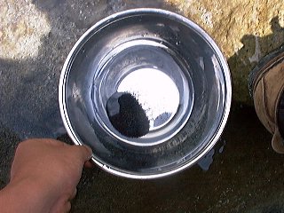 簡単に水洗する。黒い砂が底の方にあるのがわかる。