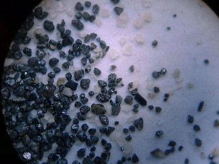 重鉱物を水洗い(椀掛け)で集めた砂。磁鉄鉱を主として、角閃石や黒雲母、 ジルコンなども含まれる。
